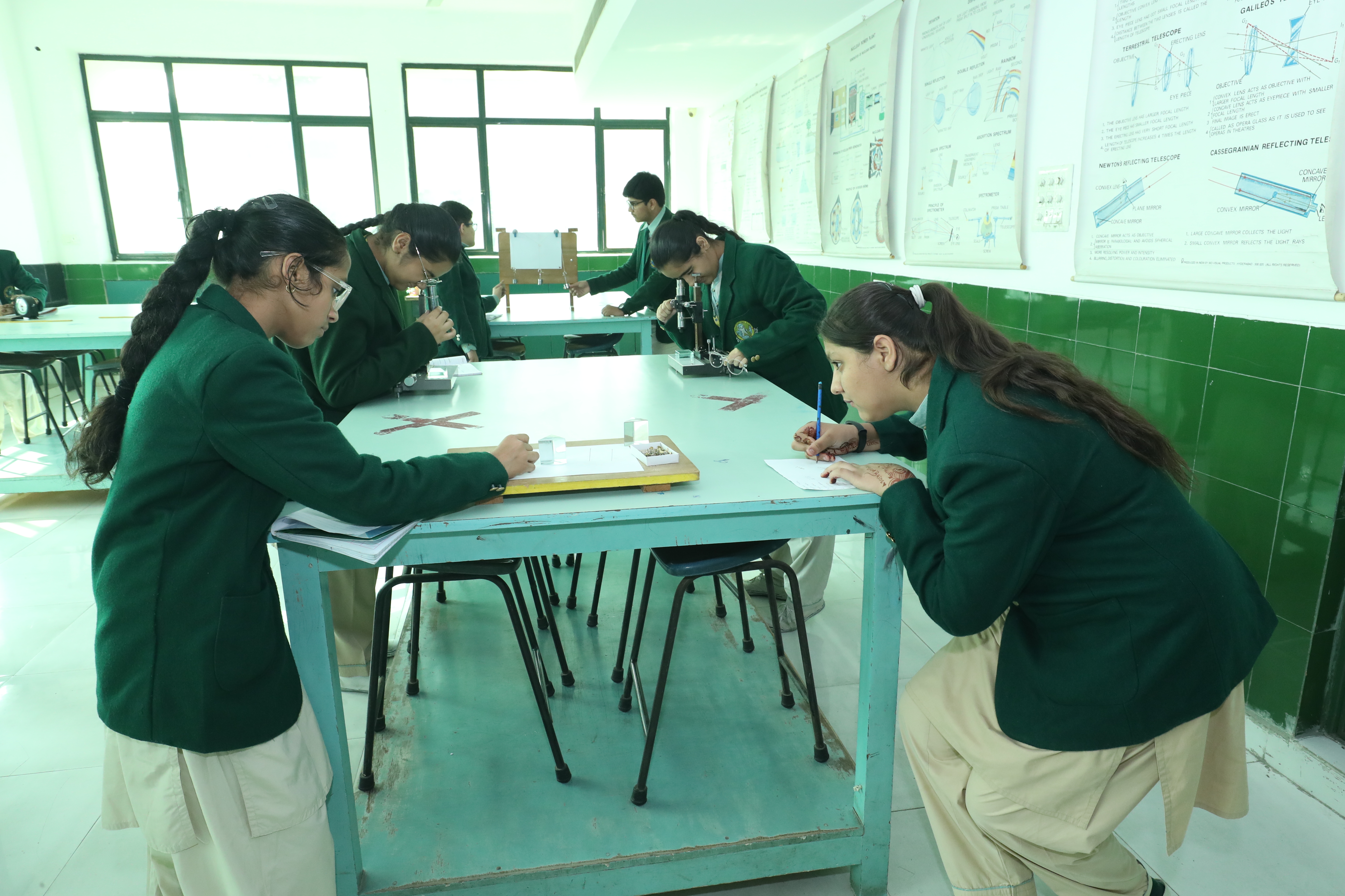 Physics lab is well equipped to meet the requirements and interests of students. Sophisticated and wide ranges of equipments include – voltmeter, potentiometer, electronic and optical instruments etc. The spacious lab caters 30 students at a time. Students are encouraged to understand concepts by experimentation. It is equipped with the latest facilities to have hands on experience for the students. It reinforces the knowledge gained in theory class by emphasizing on the fundamental concepts of Physics. The lab also helps them to develop experimental and analytical skills through direct observation and activities. The students get a virtual experience of experiments through the TATA EDGE smart class.
